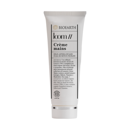 Una raffinata formula per la cura delle mani ad alto tenore di estratto di bava di lumaca consigliata per mani segnate dal tempo, secche screpolate. Oltre ai principi attivi naturalmente presenti nella bava di lumaca, Crème Mains contiene estratti botanici biologici, xilitolo, vitamine e bisabololo. Non unge. I principi attivi contenuti naturalmente nella bava di lumaca ricostituiscono i tessuti, donando risultati sorprendenti come attenuazione netta delle macchie cutanee, di arrossamenti e di cicatrici.